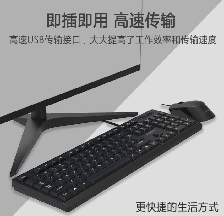 飛利浦SPT6234有線辦公鍵鼠套裝 筆記本臺(tái)式電腦USB商務(wù)鍵盤鼠標(biāo)