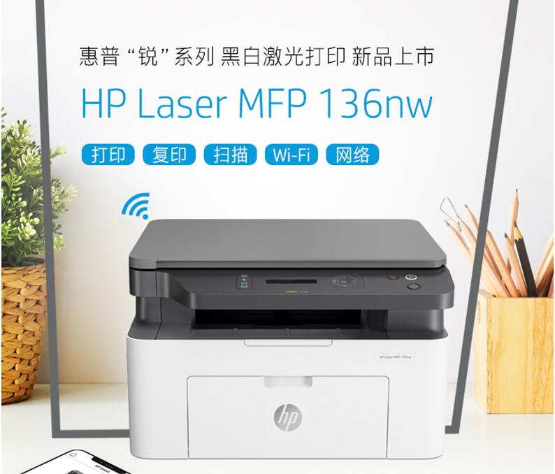 HP惠普M136w黑白激光打印機(jī)掃描復(fù)印一體機(jī)