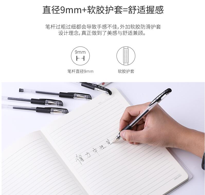 得力文具33140中性筆學(xué)生考試量販?zhǔn)胶诠P水筆碳素筆0.5mm辦公用品包郵書寫工具60支裝