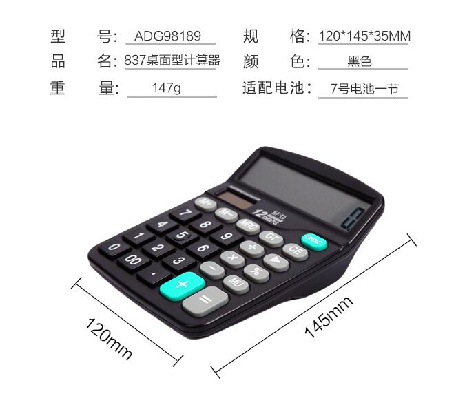 晨光文具837太陽(yáng)能計(jì)算器商務(wù)型辦公用會(huì)計(jì)專用科學(xué)商用學(xué)生考試大屏大按鍵計(jì)算機(jī)大號(hào)小號(hào)便攜雙電源