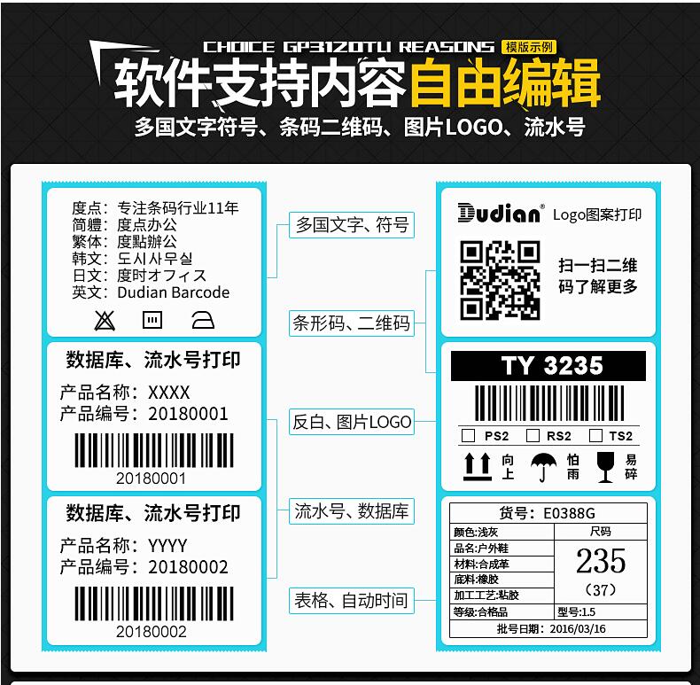 佳博GP3120TU熱敏條碼打印機(jī) 不干膠標(biāo)簽機(jī)服裝吊牌價(jià)格貼紙 超市收銀奶茶手機(jī)藍(lán)牙二維碼商食品面包月餅倉(cāng)庫(kù)